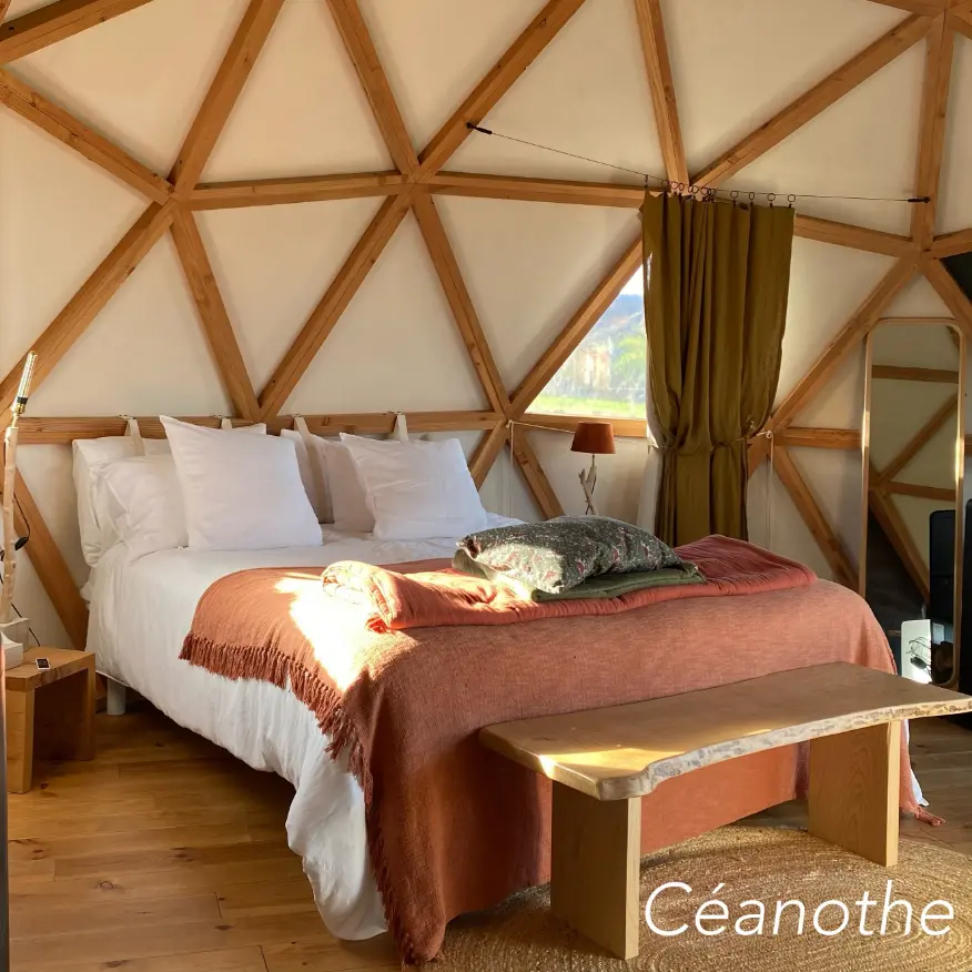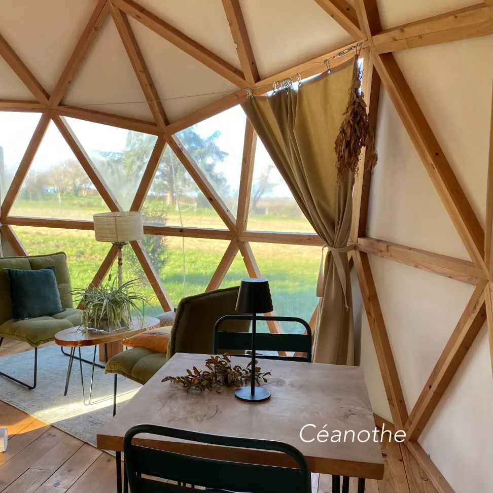 Laissez-vous séduire par le Dôme Céanothe, un hébergement de 30 m² en lisière de forêt. Entre son isolation naturelle en chanvre et sa vue imprenable sur la prairie, ce refuge insolite marie avec élégance l’esprit sauvage et le confort absolu. Profitez de votre jacuzzi privé ou détendez-vous au coin du poêle à bois pour une expérience immersive, où chaque détail invite à une déconnexion totale en pleine nature.